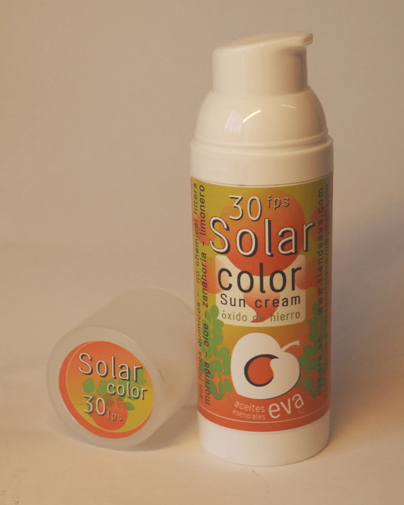 Esta crema solar protege del sol con una barrera física sin derivados plásticos, su colorante es de óxido de hierro para disimular su aplicación en la piel de forma natural y su base de Moringa malagueña nutre la piel y le aporta antioxidantes y tersura. Esta crema tiene triple función; protege del sol, nutre y vale como base natural para maquillaje.